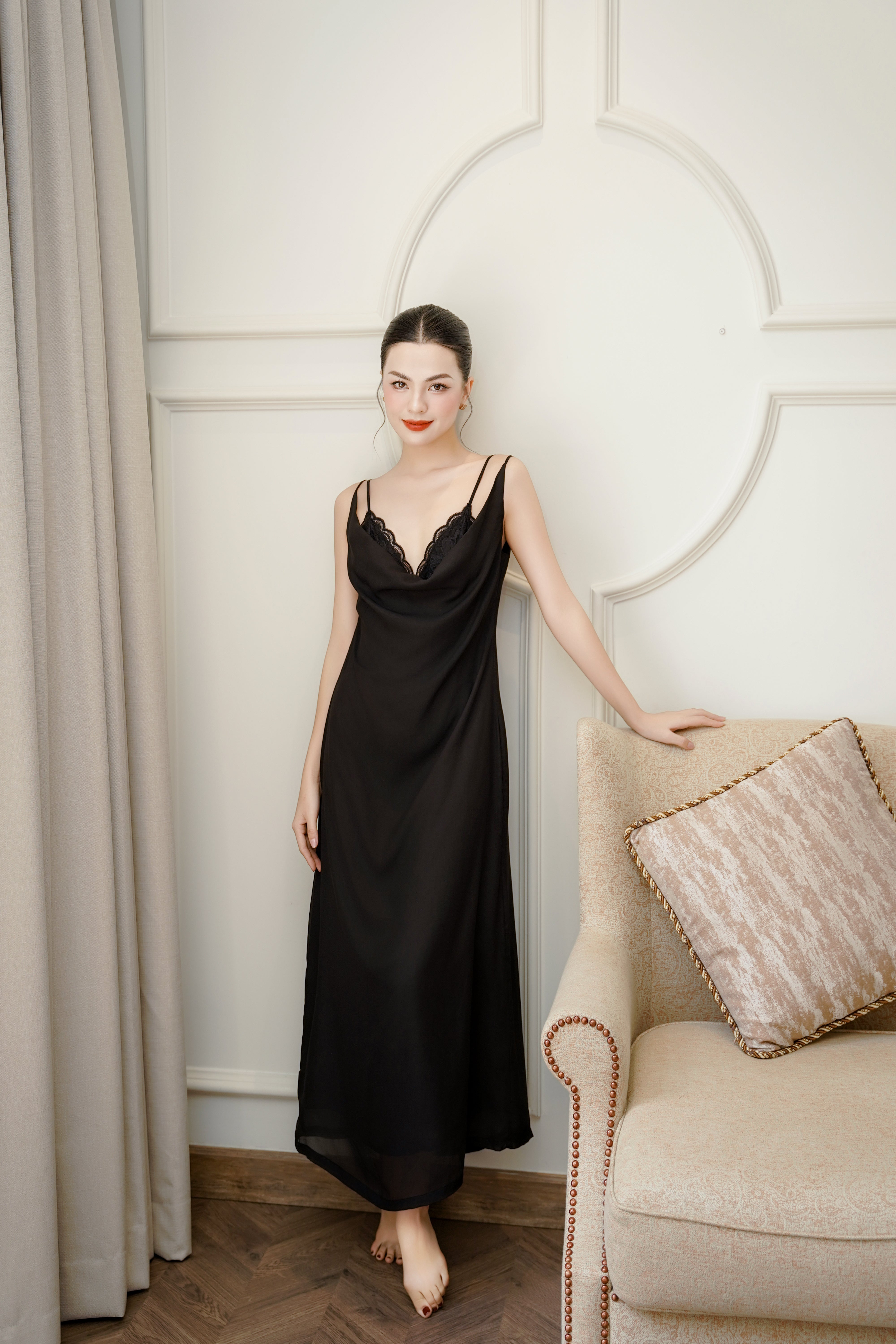 Đầm Voan Dài Cổ Lưng Đổ
