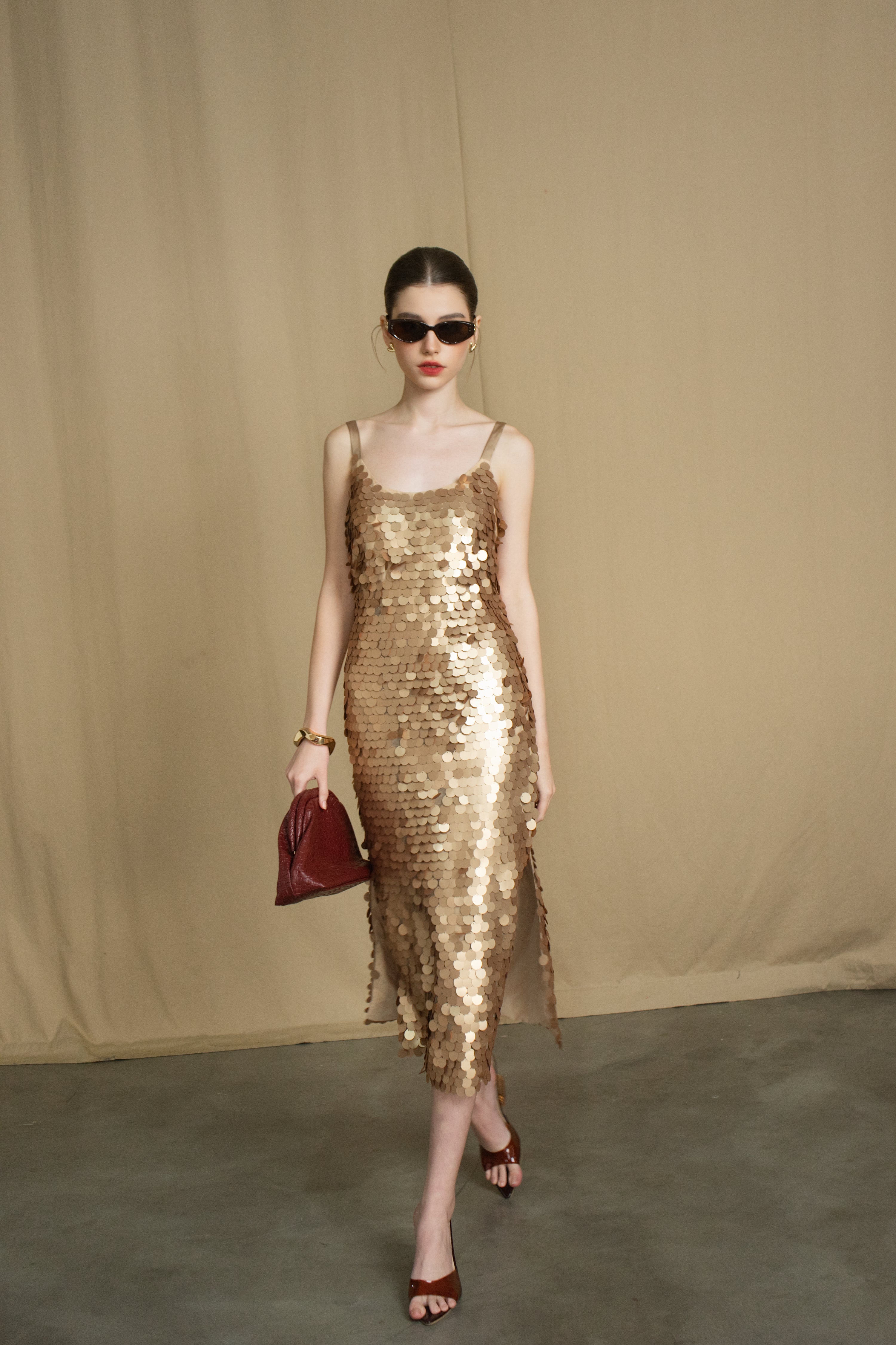 Đầm cao cấp lấp lánh dáng lửng có màu rượu champagne sang trọng và chất liệu sequin cao cấp, mang đến vẻ ngoài tinh tế và thời thượng. Với phong cách hiện đại, trẻ trung, đầm phù hợp với mọi dịp, trong khi thiết kế dễ mặc tạo sự tiện lợi cho người sử dụng. Khám phá vẻ đẹp quyến rũ và cá tính của bạn cùng đầm Champagne Glow.